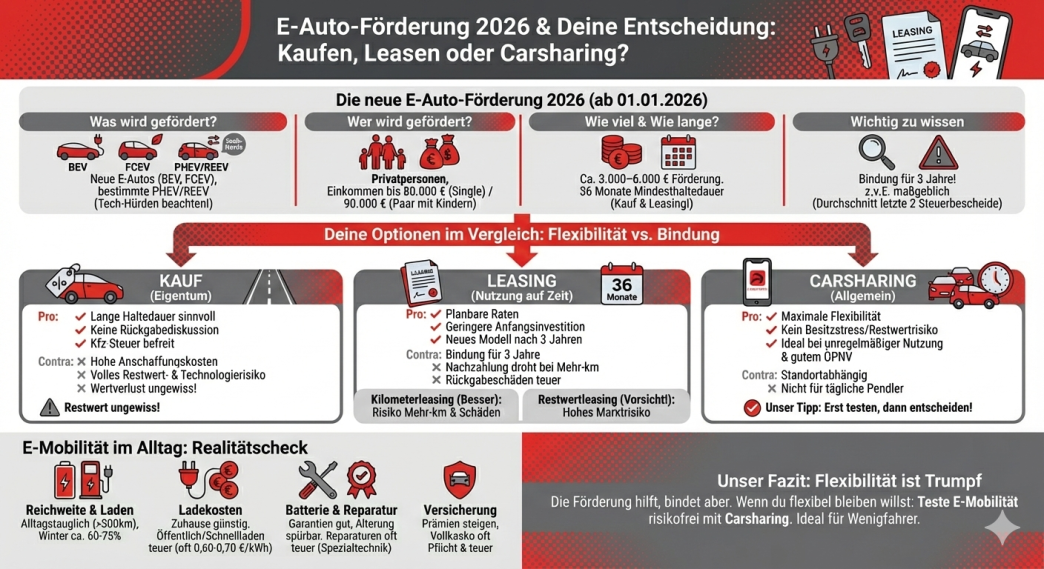 E-Auto-Förderung 2026: Kaufen, leasen â oder doch lieber Carsharing?